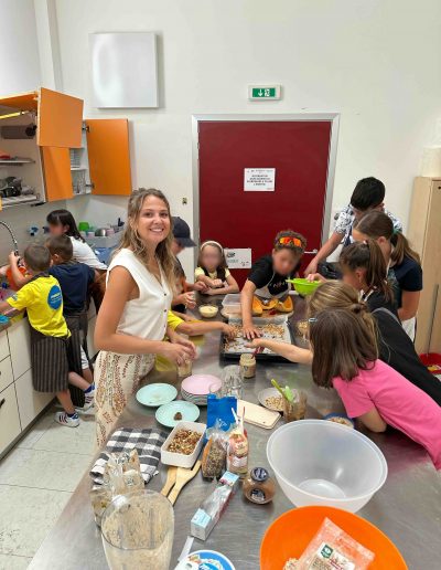 Nei greast estivi con bambini di diverse età abbiamo fatto workshop e laboratori pratici di cucina, collage e sperimentazione con i cibi per avvicinarli ai principi di una sana e corretta alimentazione stimolando curiosità e consapevolezza verso ciò che portano a tavola. Un’esperienza educativa che unisce gioco e apprendimento.