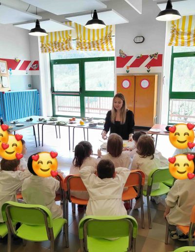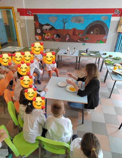 Nelle scuole materne lavoriamo attraverso il gioco, la sperimentazione e l’uso dei cinque sensi: i bambini imparano a familiarizzare con il cibo attraverso assaggi, storie e racconti. Come nella storia di Luca e il suo orsachiotto Arturo, che li ha guidati a innamorarsi di un’alimentazione sana e varia in modo divertente e coinvolgente.